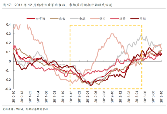 2011年12月稳增长计谋出台后,盈利预期开动触底回暖。从商场微不雅层面来看,2011年12月稳增长计谋出台后,分析师对于个股的盈利预期举座开动由负转正,体现出商场对于企业盈利底部回转的乐不雅形态。