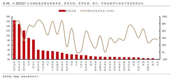 医药生物、家用电器、银行、非银金融等行业公募持仓比例处于历史较低分位数,具有较大成立空间。从2023年一季度主动偏股基金持仓比例来看,虚耗板块的医药生物(11.98%)、家用电器(2.14%)、纺织服装(0.35%)等行业持仓比例分袂处于历史较低的32.6%分位数、15.3%分位数和26.9%分位数,顺周期板块的银行(1.93%)、非银金融(0.90%)、房地产(1.63%)、建筑材料(0.89%)等行业持仓比例分袂处于历史较低的1.9%分位数、0%分位数、3.8%分位数和26.9%分位数,主动偏股基金持仓比例仍有较大成立空间。