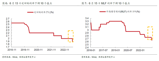 经济下行的配景下,近期货币计谋开动旯旮宽松。6月13日央行公开商场逆回购(OMO)中标利率下降10个基点至1.9%,6月15日,央行进行2370亿元1年期MLF操作,对冲当日到期的2000亿元MLF,实现净投放370亿元;中标利率下调10个基点下调至2.65%,后续贷款商场报价利率(LPR)有望跟随下调。