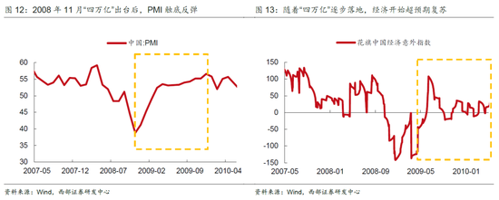 跟着计谋落地,经济复苏预期得到考证。跟着“四万亿”投资谋略的冉冉落地,经济数据开动回暖,制造业PMI触底反弹并快速回到隆替线以上,反应经济景气向好。此外,花旗中国经济不测指数由负转正,稳增长计谋出台时的经济复苏预期得到考证。