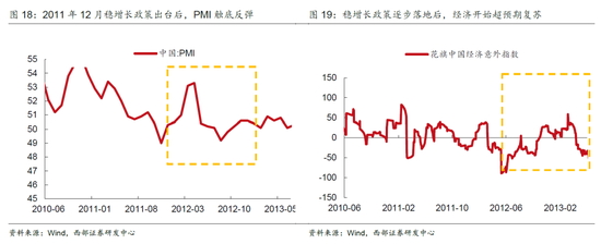 跟着计谋落地,本轮稳增长行情中经济复苏亦得到考证。陪同2011-2012年稳增长计谋的冉冉落地,经济数据开动回暖,制造业PMI触底反弹,快速回到隆替线以上,经济景气水平回暖。此外,花旗中国经济不测指数由负转正,反应经济超预期复苏,稳增长计谋出台时的经济复苏预期得到考证。