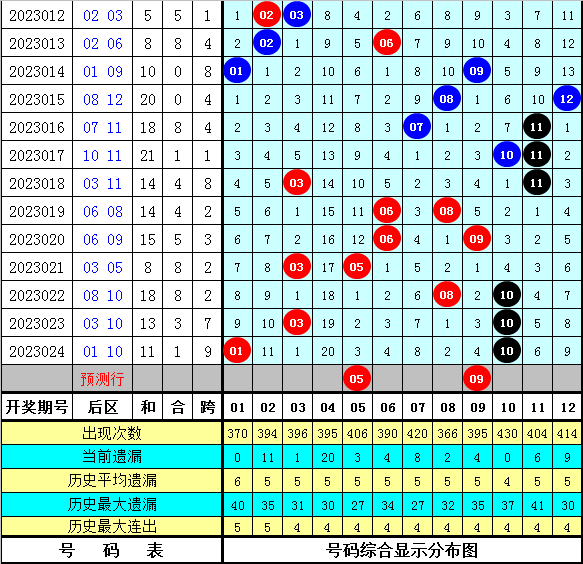 和值跨度:上期和值开出107,对比第2023023期和值下落了4个点位,本期展望和值在大号区域热出,看好出面前110周围。